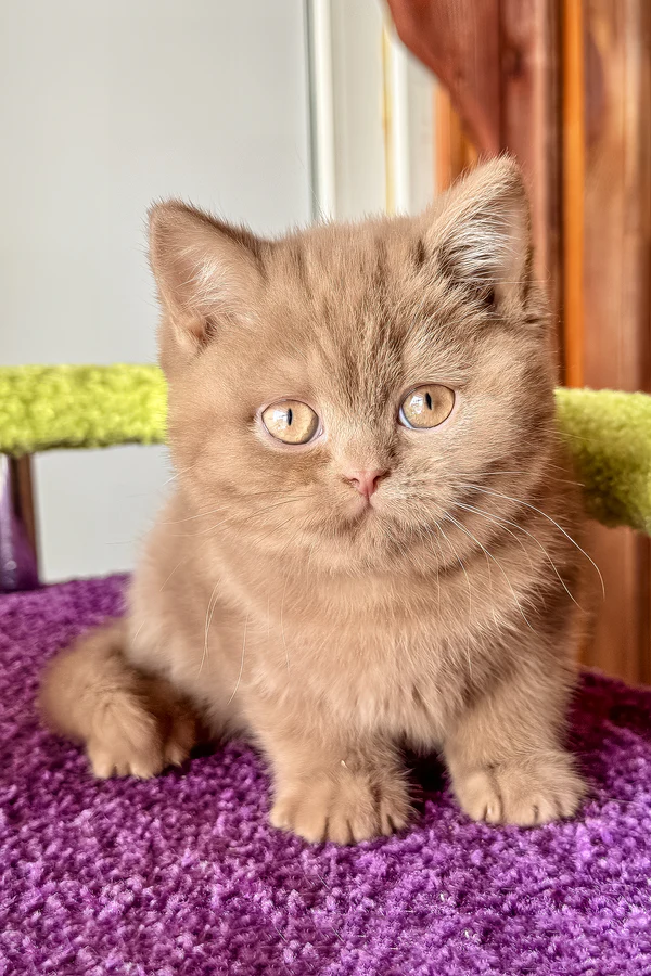 Hi, I’m Ikar — a cinnamon British Shorthair boy with big yellow eyes, cute little ears, and a plush coat that looks warm and rich like caramel. I eat Purina Pro Plan and Royal Canin, and I’m happiest with a calm routine: good meals, cozy naps, and plenty of time near my people.I’m very gentle and kind, with a playful but sweet personality. I’m affectionate, friendly, and I truly love being close — whether that means following you around, curling up nearby, or leaning in for pets and attention. I settle into home life easily and make a wonderful everyday companion.I come from Viktoria’s WCF-registered program with 5 years of breeding experience, known for rare color genetics, strict standards, and a family-oriented upbringing that helps kittens grow healthy, well-typed, and emotionally stable. If purchased as a pet, I will come fixed, and breeding rights are available. I have a fluffy cinnamon coat, yellow eyes, and a heart that loves being near you. If your home is missing a gentle presence, I’d love to fill that space.