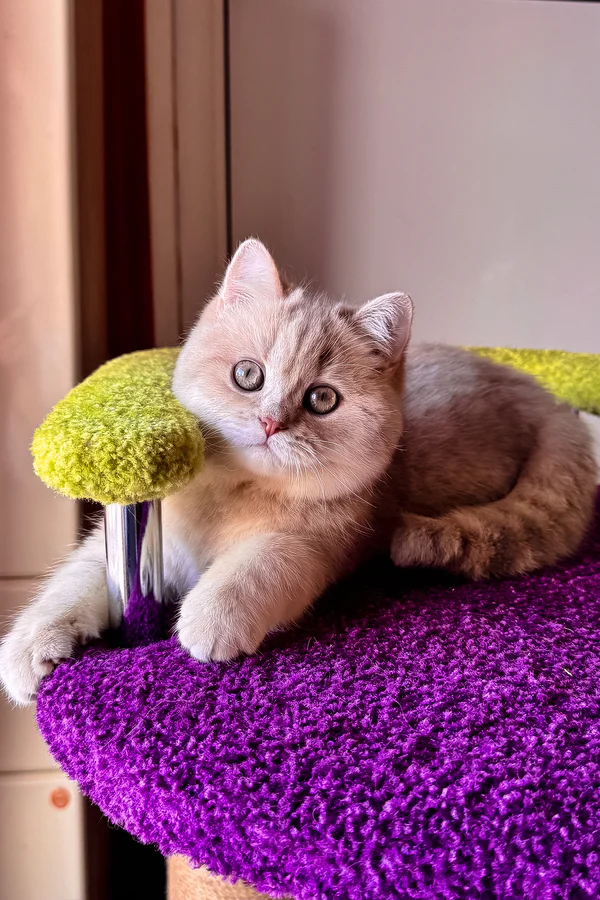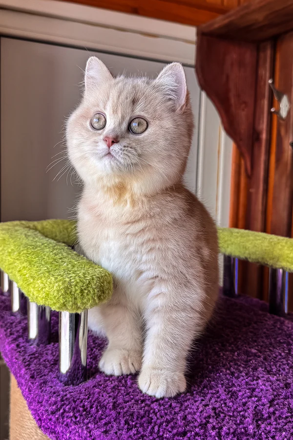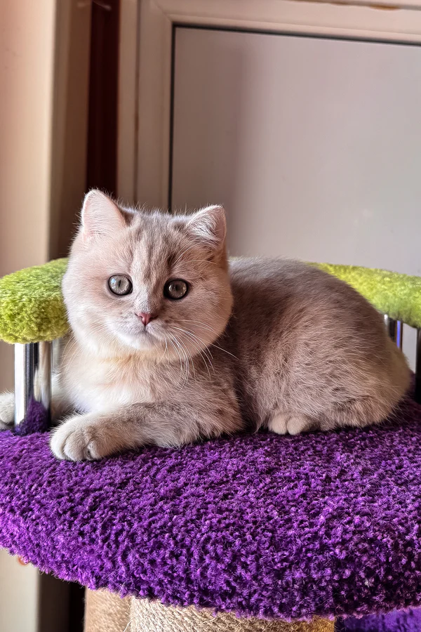 Hello, my name is Ivy, and I’m a British Shorthair boy with a calm heart and a gentle, steady way of being. My lilac golden shaded coat has a soft, warm glow, and my large yellow eyes give me a thoughtful, open expression. I have small, rounded ears and a solid, balanced build that already shows the classic strength of my breed. I move quietly and confidently, and I tend to bring a feeling of comfort into the room just by being present.I’m very sweet and affectionate, and I truly enjoy staying close to people. I like gentle handling and will happily relax in your arms or settle beside you while you go about your day. I have a playful nature, but it’s soft and easygoing rather than overly energetic. I’m friendly, kind, and well mannered, and I adapt quickly to routines and new environments. I eat Purina Pro Plan and Royal Canin, which help keep my coat plush and my body healthy. I’m ready to join your home as a pet fixed, with breeding rights offered only to those who handle the breed carefully and responsibly.I was raised by Viktoria at a WCF registered cattery with five years of dedicated experience. The cattery is known for its professionalism, strict health standards, and a family oriented approach that prioritizes emotional stability alongside beautiful type. With a strong foundation in rare color genetics, kittens are raised with daily interaction, calm handling, and attentive care. Growing up in this environment helped me become relaxed, trusting, and socially confident. British Shorthairs are known for their quiet dignity, loyalty, and emotional balance, and those qualities come naturally to me. If you’re looking for a companion who offers gentle affection, steady presence, and a warm connection, maybe your home is the one I’ve been waiting for. If you feel I belong with you, I’m ready to meet you.