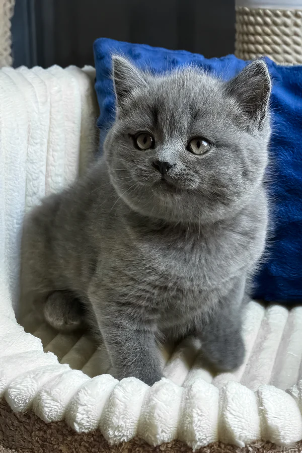 Hi, I’m Izumrud, a blue British Shorthair boy with calm golden eyes and a soft, plush coat that’s already beginning to show the sturdy charm of my breed. I move at my own pace and like to take things in before I act. Gentle voices, quiet mornings, and being close enough to watch you are my favorite things. I may seem serious at first, but that’s just me learning who you are. Once I feel safe, I settle in easily and stay close, happy to share your space without needing to be the center of attention.I’m a friendly and social little boy in a thoughtful, steady way. I enjoy following you from room to room, sitting nearby, and feeling included in whatever you’re doing. I don’t rush into play, but when I do join in, it’s with calm curiosity and soft paws. I eat Royal Canin, which helps me grow strong and balanced as I continue to explore the world around me. If I come to you as a pet, I will remain intact under a non-breeding agreement, with breeding rights available if that’s something you’re looking for. I’m meant to grow into a confident, affectionate companion who brings comfort rather than chaos.I was raised in a calm, structured environment within a WCF-registered cattery, with careful early socialization from the very beginning. That kind of start has helped me feel comfortable with people and settled in peaceful homes. I’m not loud or demanding, and I don’t need constant excitement to feel happy. I offer a quiet presence, warm fur, and a sense of steadiness that grows stronger with time. I’m still learning, still growing, and still imagining the person I’ll belong to. Maybe you’re looking for a kitten who will grow beside you, not rush ahead. If you feel that quiet connection when you read my name, maybe your home is the one I’ve been waiting for.