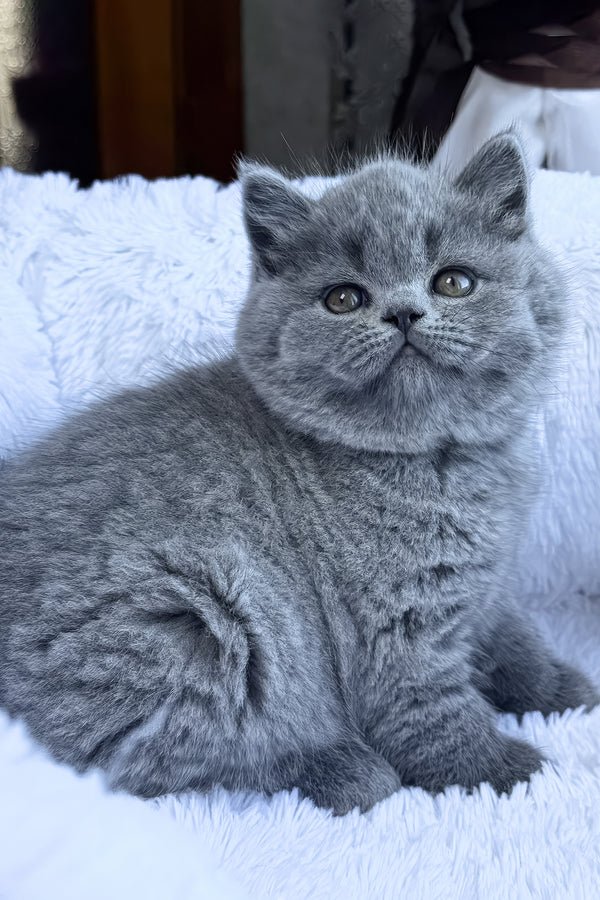 Hello. My name is Polikarp, and I’m a British Shorthair boy with a calm presence and classic breed elegance. My coat is a solid blue dense, plush, and beautifully even giving me that rounded, teddy bear look the breed is known for. I have rich orange eyes that stand out warmly against my coat and give me a steady, thoughtful expression. I carry myself with quiet confidence and bring a sense of balance and calm wherever I am.As a British Shorthair, I value comfort, routine, and a peaceful rhythm to daily life. I’m affectionate in a gentle, understated way and enjoy being near my people without needing constant attention. I like shared space, calm interaction, and moments of quiet companionship. My temperament makes me well suited to a home that appreciates a relaxed, emotionally steady cat who fits naturally into everyday routines. I eat Royal Canin, which supports my health and helps maintain my coat and overall condition. If I join your home as a pet, I will come intact under a non-breeding agreement, with breeding rights available if that’s something you’re considering.I was raised by a WCF registered breeder who focuses on correct type, balance, and responsible care. British Shorthairs are known for their reliability, patience, and calm charm, and that’s exactly how I move through life. I bring quiet companionship, a composed nature, and timeless British Shorthair beauty into the home I live in. For those seeking a steady, elegant companion who exudes calm and offers gentle affection, perhaps your home is my perfect match.